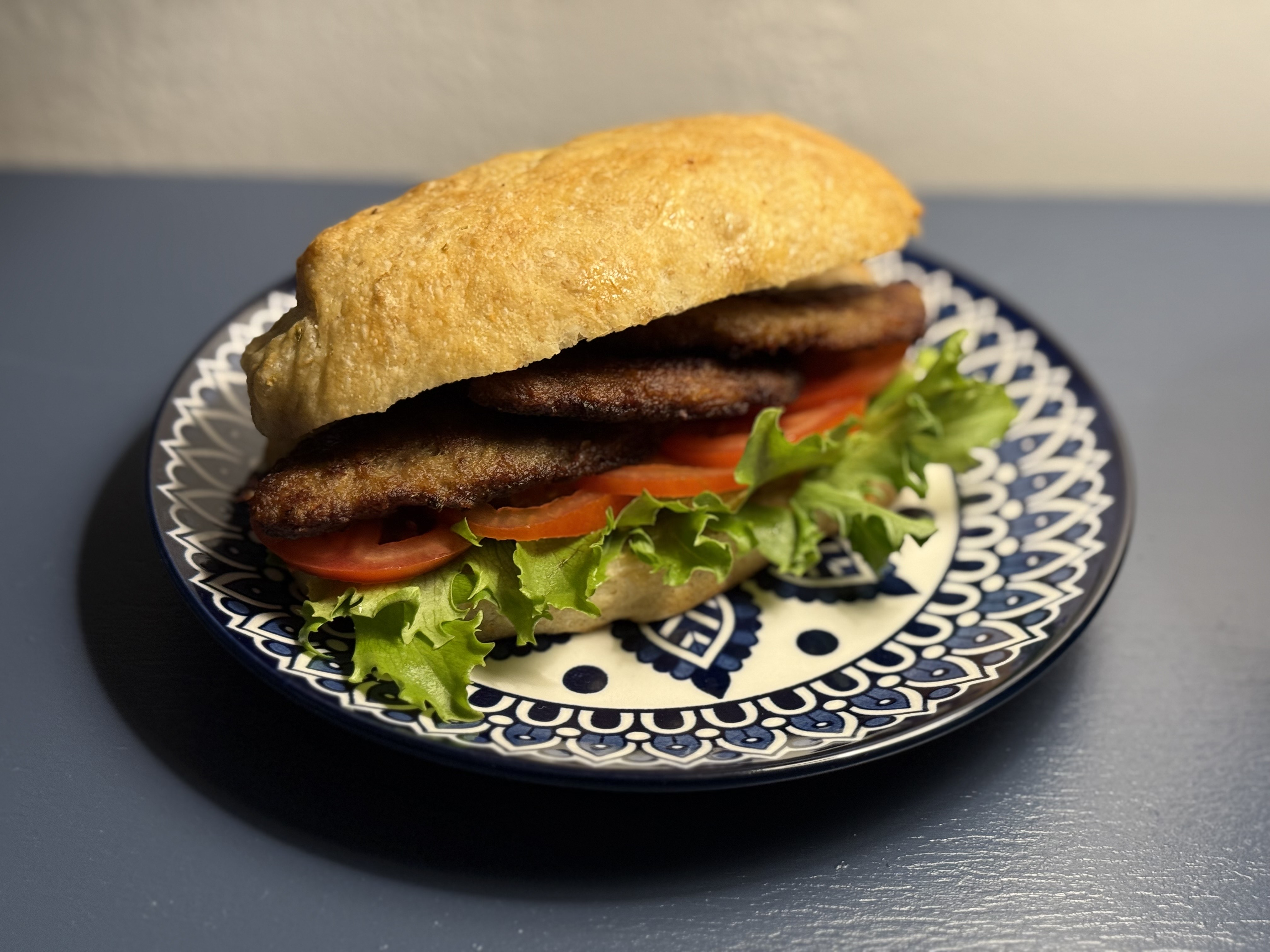 ساندویچ مرغ وقارچ با نان چاپاتا Chicken Mushroom Sandwich on Ciabatta
