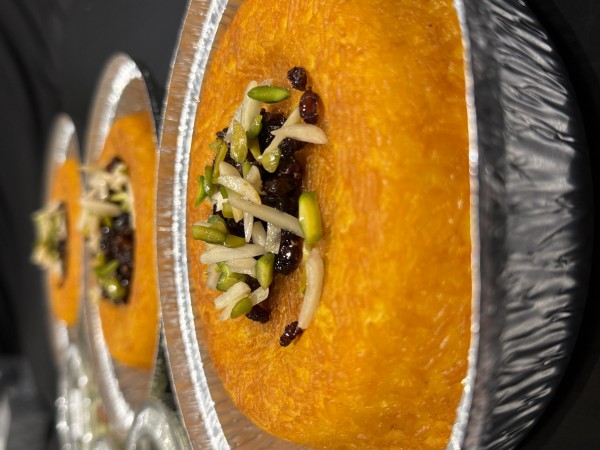 ترکیبی از زعفران ناب برنج ایرانی و مرغ مزهدار شده با بافتی لطیف و تهدیگی طلایی و کریسپی