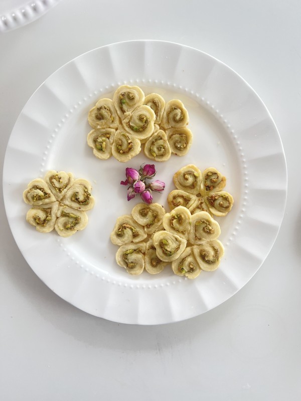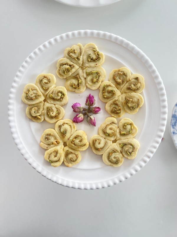 Soft, buttery, and delicately handcrafted, these pistachio rolls are made with finely ground premium pistachios and a light, tender dough. Each piece is carefully shaped into a floral form, bringing together elegance and flavor in every bite.