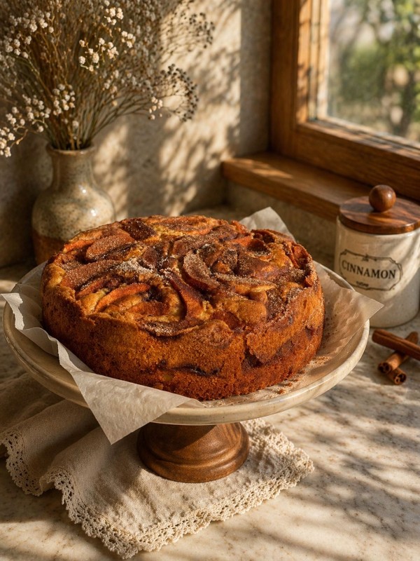 A homemade apple cake made with tender apple slices and warm cinnamon. Soft, aromatic, and lightly sweet, this cake is a comforting choice for tea time, family gatherings, or a simple homemade dessert.